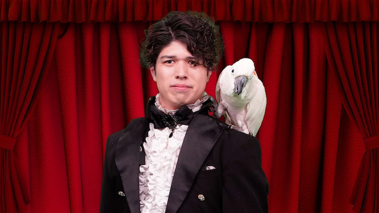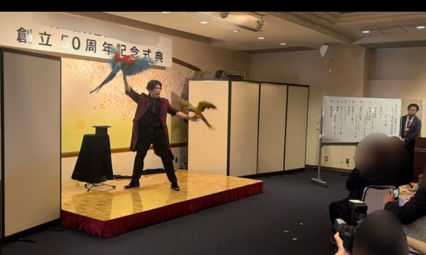 多彩なレパートリーを持ち、中でも鳩や大型鳥を自在に操るバードアクトは圧巻。業界内でも国内外問わず高評価を得ている。